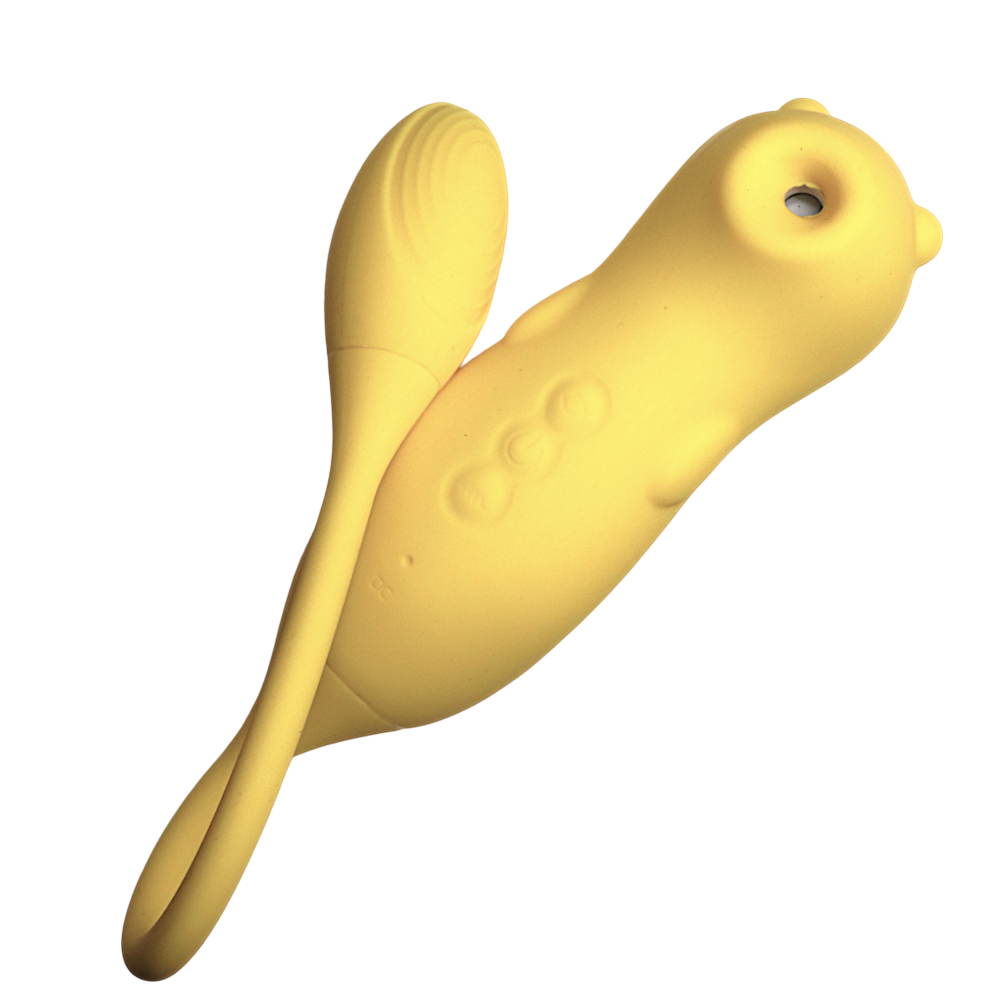 Характеристики Вагинальный вибратор с вакуумной стимуляцией клитора жёлтый Fun Bear