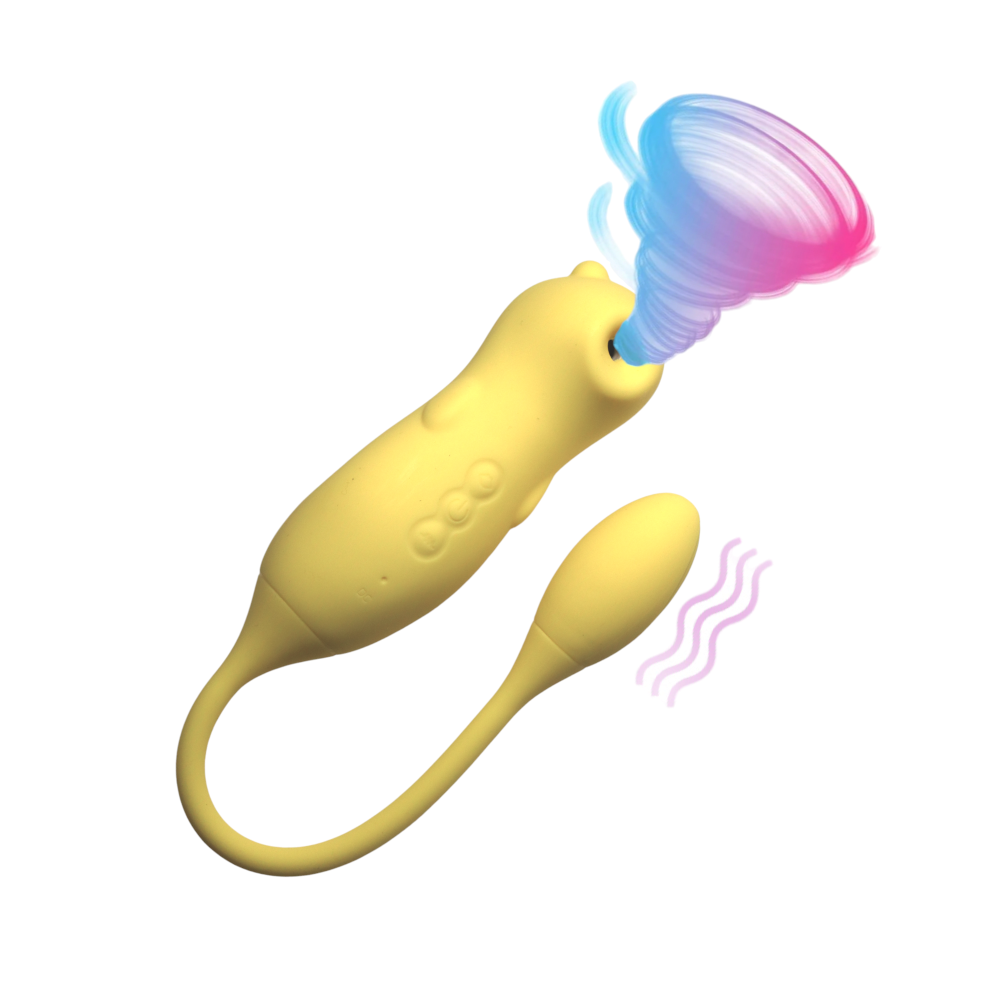 Вагинальный вибратор с вакуумной стимуляцией клитора жёлтый Fun Bear