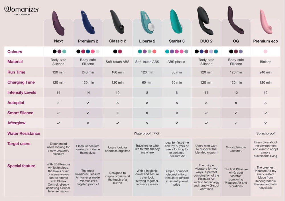 Womanizer Next обеспечивает интенсивное удовольствие без чрезмерной стимуляции, а благодаря новому моторчику он отличается самым низким уровнем шума на сегодня.