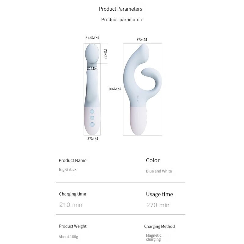 Характеристики Вапгинальный вибратор для точки G кролик с клиторальным отростком KISTOY Big G голубой