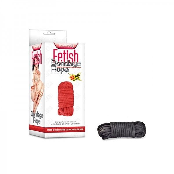 Характеристики Веревка черная для связывания тела БДСМ-фиксации Lovetoy из хлопка длина 10 метров