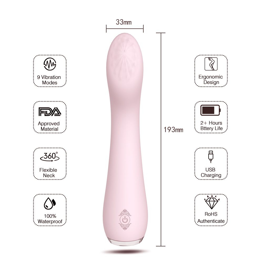 Характеристики Вибратор 19,3 см/3,3 см для точки G и клитора с подсветкой LISA 9 режимов вибрации Супер Тихий