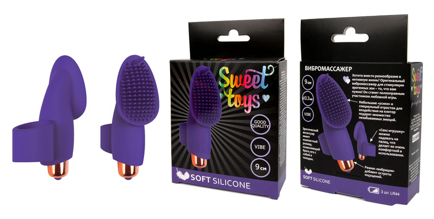 Характеристики Вибратор для клитора силиконовый с усиками на палец SWEET TOYS фиолетовый L 9 см D 3,3 см