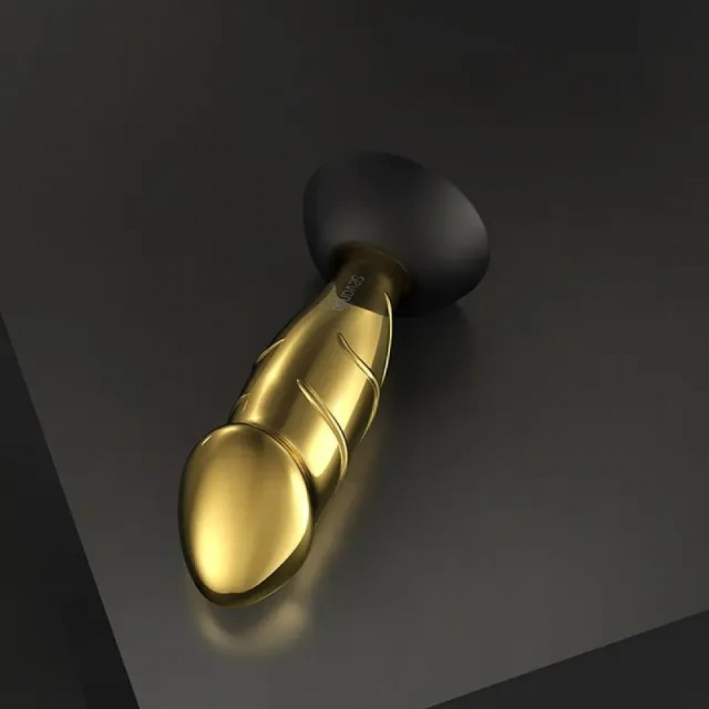 Этот массажер простаты, сияющий гальваническим золотым металлом, воплощает в себе роскошь и функциональность, обещая ощущения, просто не от этого мира.
