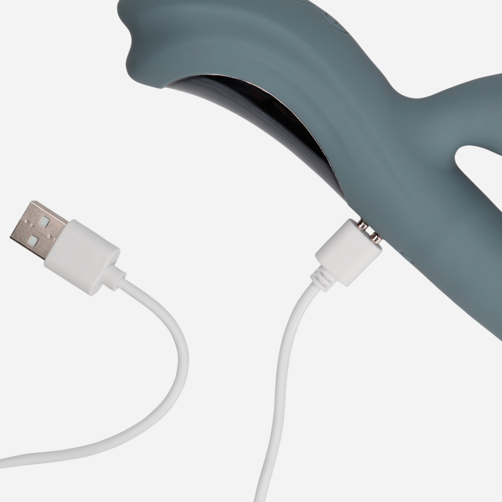 Характеристики Вибратор для точки G имитирующий фингеринг с отростком для клитора серого цвета Loveline
