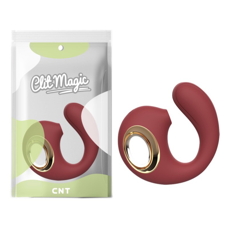 Вибратор для точки G с вакуумной стимуляцией клитора красного цвета Cnt Dolphine Air