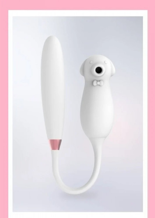 Двойной вибратор с вакуумной стимуляцией клитора белого цвета Boss series Elva Dual Purpose white