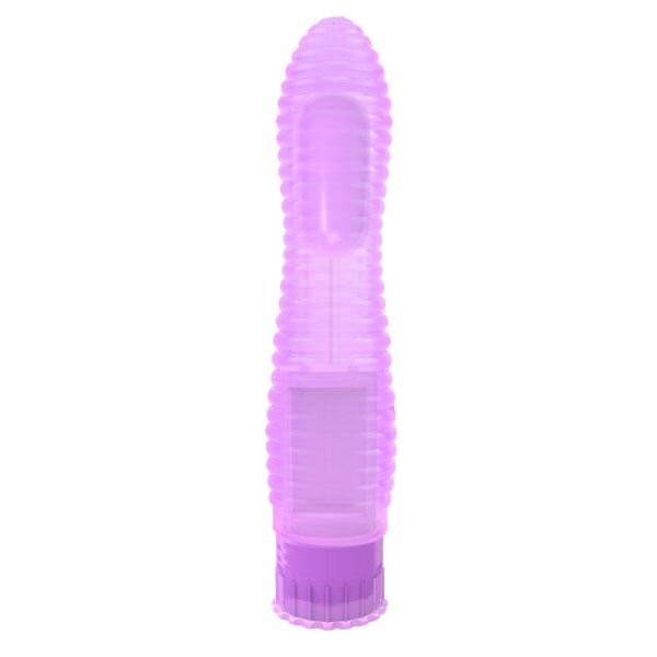 Вибромассажер фиолетового цвета, изготовлен из мягкого гелевого материала.