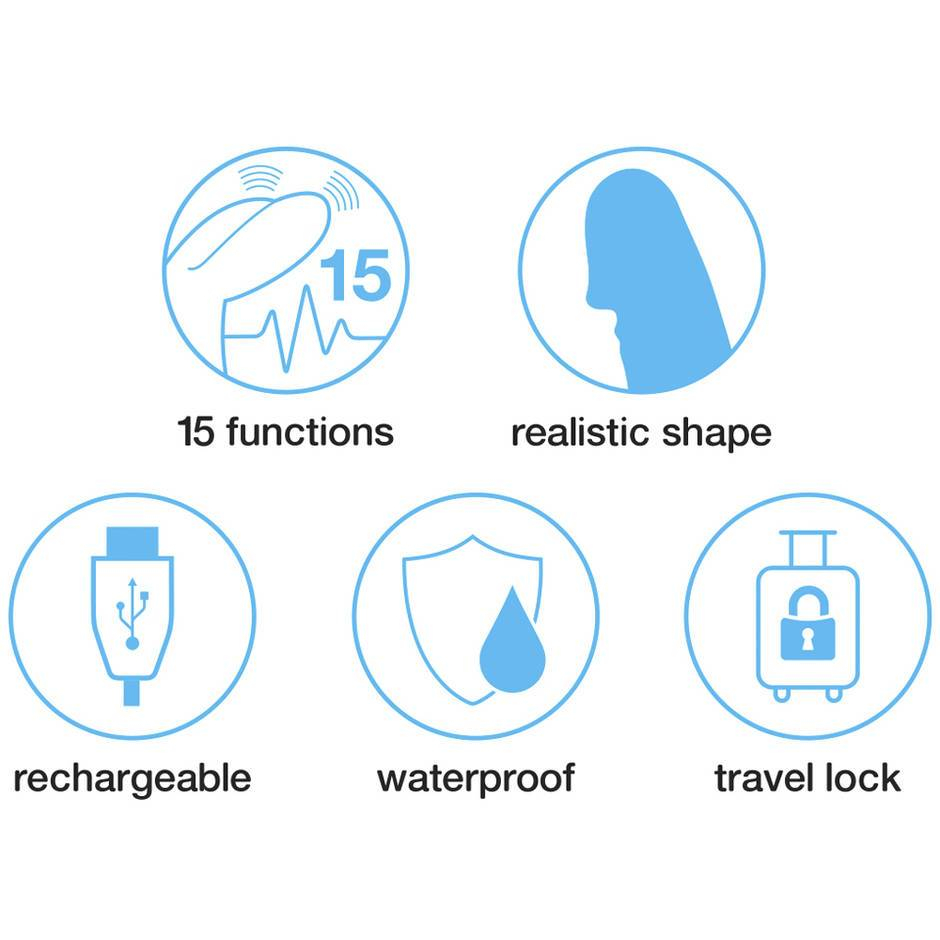 Используйте простую 2-кнопочную панель, чтобы управлять каждым двигателем независимо (в отростке и стержне), и наслаждайтесь индивидуальными игровыми сессиями с 15-ю "прыгающими" режимами вибрации.