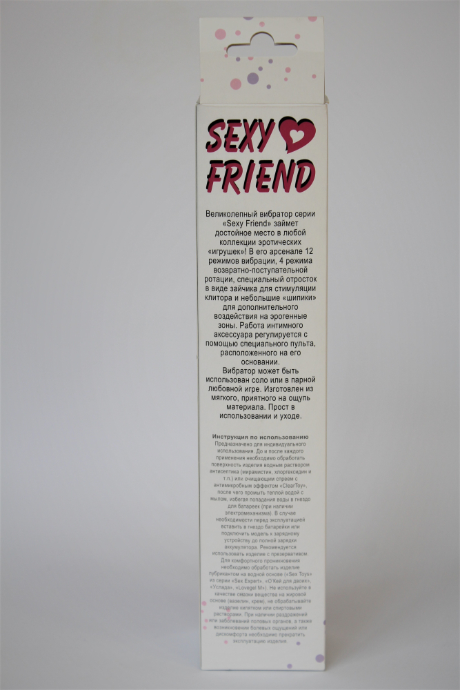 Получать новые ощущения каждый день – так просто с вибратором из серии «Sexy Friend»! Это настоящий хит продаж! Женский аксессуар сделан из приятного на ощупь материала TPR и выполнен в ярком дизайне.