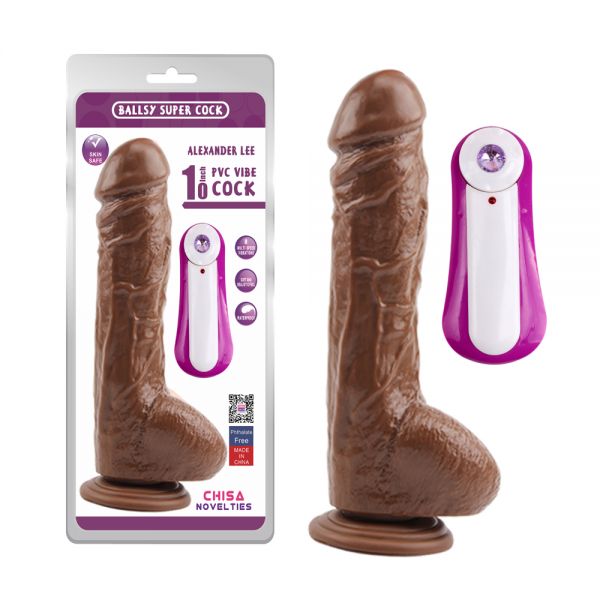 Вибратор реалистичный на присоске коричневый с пультом управления Chisa Alexander Lee