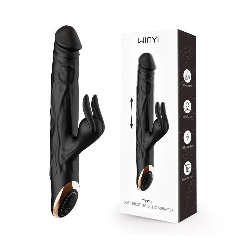 Вибратор реалистичный вагинальный и с отростком для клитора черного цвета Winyi WY0646 Terry