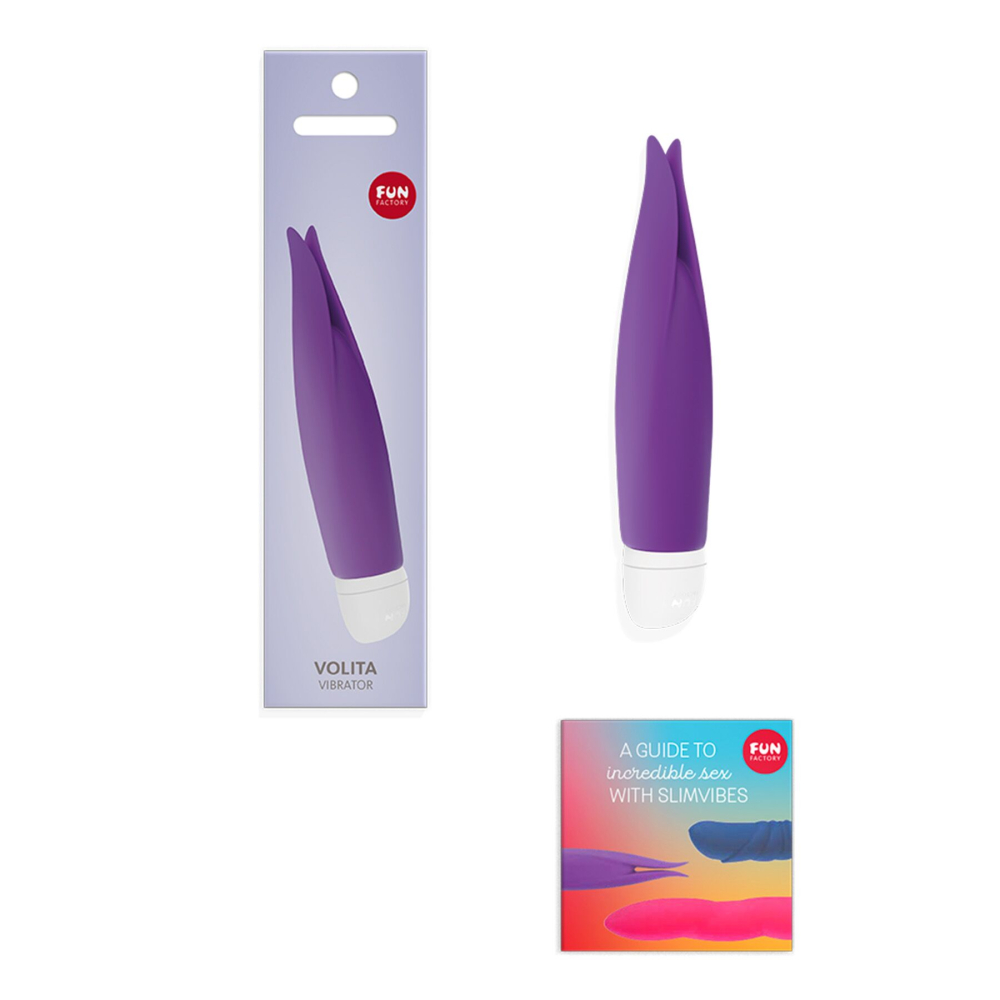 Ищете универсальную игрушку с вибрацией, которая подарит вам целую гамму нежных ощущений? Тогда советуем купить вибратор с лепестками Fun Factory VOLITA. Малыш длиной 16 см имеет необычную раздвоенную форму. Два гибких лепестка на конце приводятся в действие вибрацией: нежными дразнящими движениями они будут стимулировать любые эрогенные зоны — от сосков до клитора.