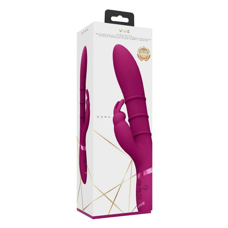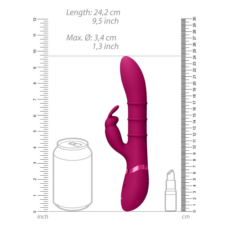 Характеристики Вибратор с подвижными стимулирующими кольцами для точки G U и с отростком для клитора розовый Vive Sora