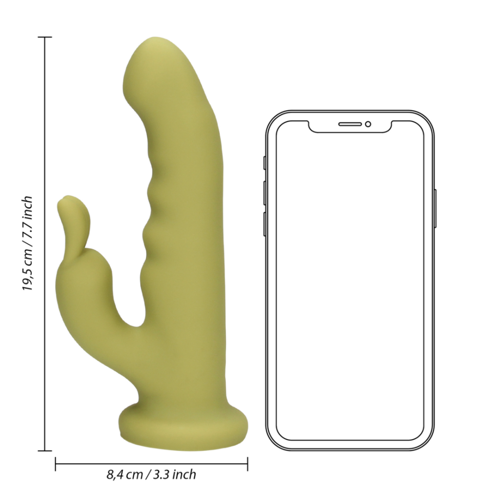 Характеристики Вибратор с ротацией для точки G и с отростком для клитора оливкового цвета Loveline