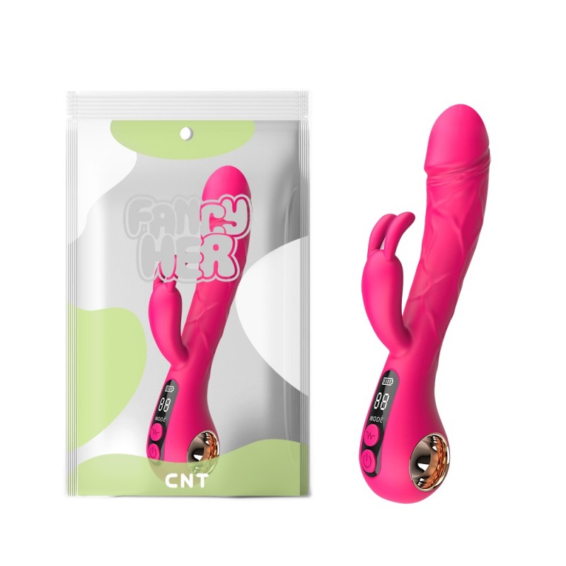 Вибратор вагинальный для точки G с отростком клитора с LCD дисплеем розового цвета Cnt Gina Bunny