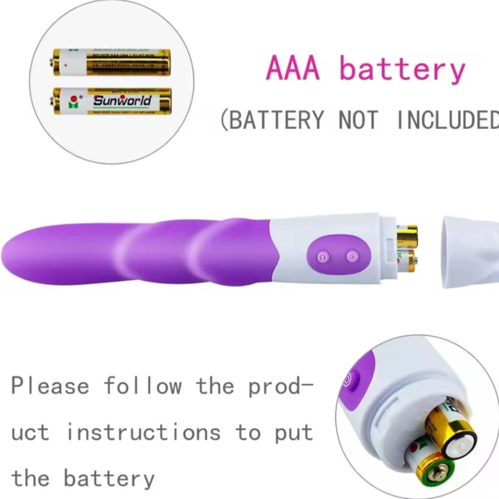 медицинского силикона в фиолетовом цвете. Ствол вибратора рельефный специально для усиленной стимуляции влагалища. Вибратор работает от 2 батареек ААА и не рассеивает вибрацию, а издаёт её из самой головки вибромассажёра на 7 разных режимах вибрации.