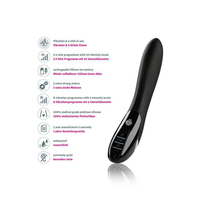 Два способа стимуляции всегда лучше, чем один, поэтому предлагаем купить вибратор с электростимуляцией Mystim Electric Eric eStim Black — лаконичная форма, 8 программ вибрации с 5 уровнями интенсивности и плюс 5 программ электростимуляции с 10 уровнями интенсивности и даже программа тренировок для укрепления мышц тазового дна. И никаких проводов и дополнительных устройств! Этот вибратор даст вам все, о чем вы мечтали, и даже намного больше!