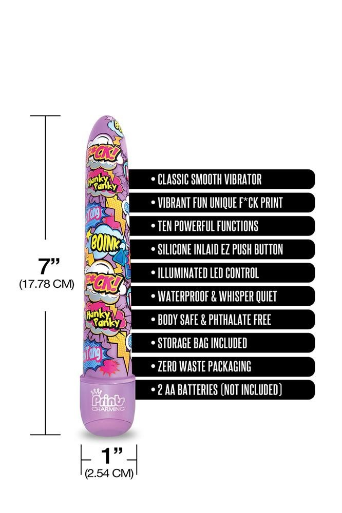 Вибратор нереалистичный с ярким принтом Prints Charming Global Novelties, фиолетовый, 17.7 х 2.5 см