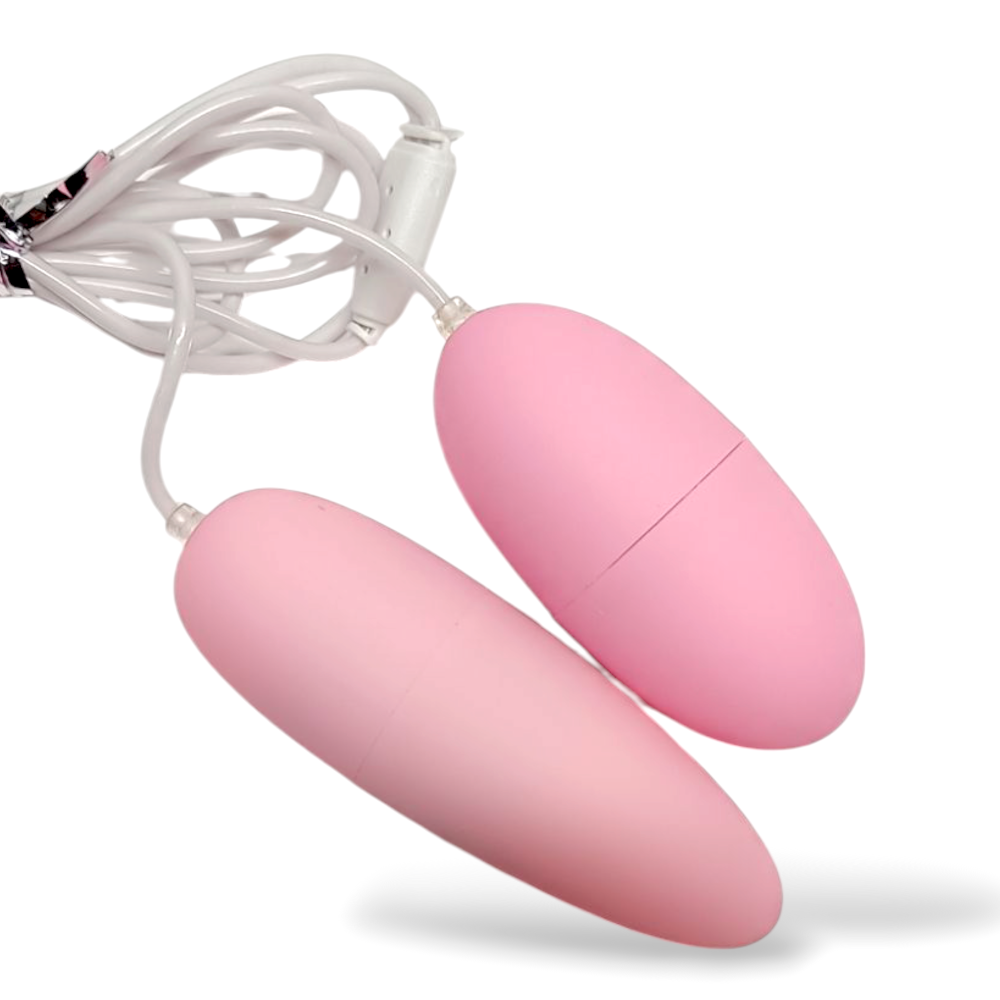 в розовом цвете. Два гладких яйца разного размера создают очень мощную вибрацию на 10 разных режимах. Яйца работают от одного пульта управления, с которым они соединяются благодаря специальному разъёму. Это позволяет получить удовольствие не только в парном массаже, но и во время соло игры.