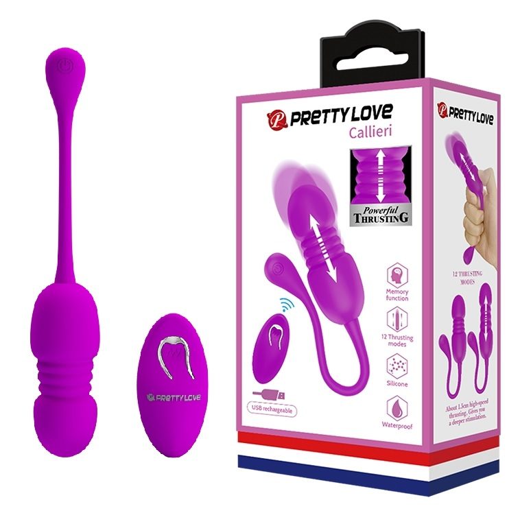Виброяйцо с дистанционным управлением и возвратно-поступательным движением фиолетового цвета Pretty Love Callieri
