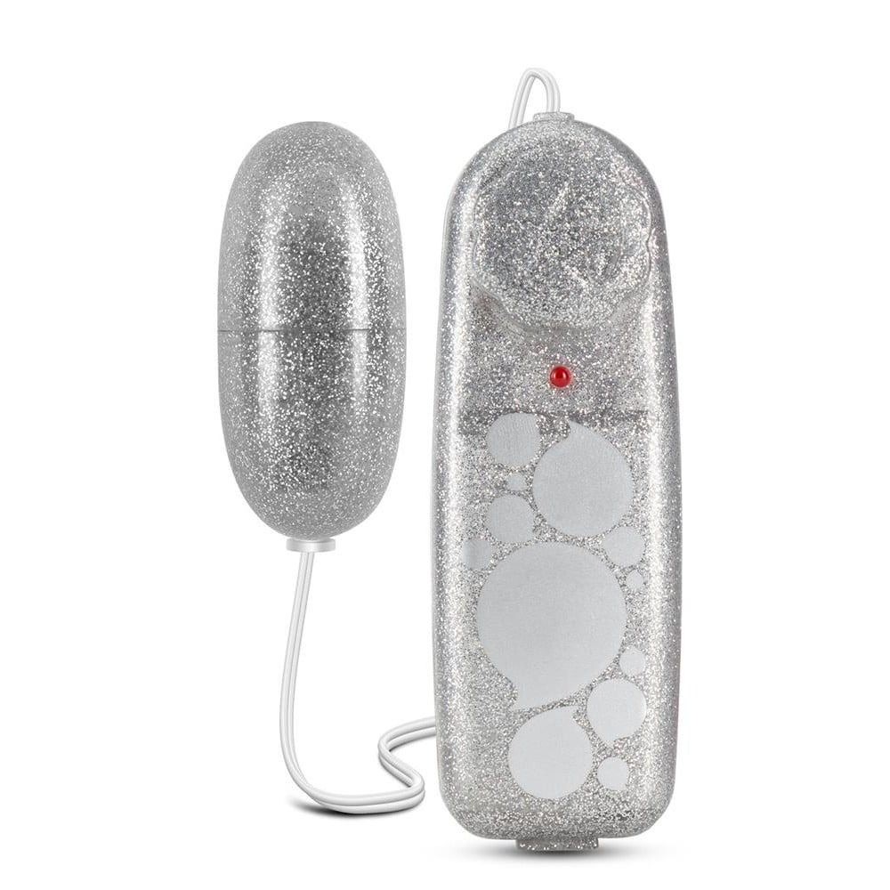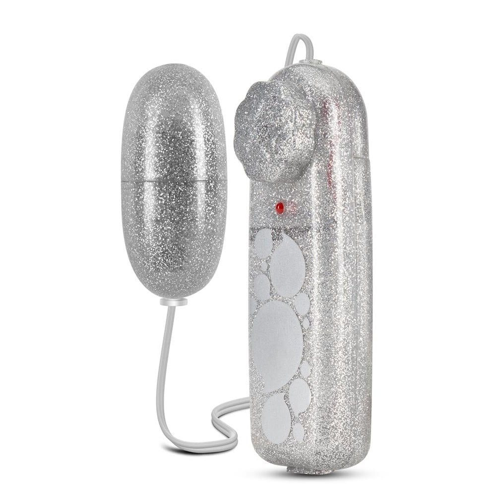 Виброяйцо с пультом управления B Yours с глиттером, серебристое