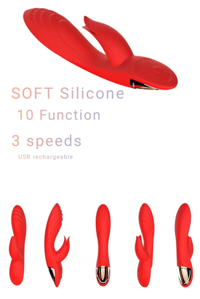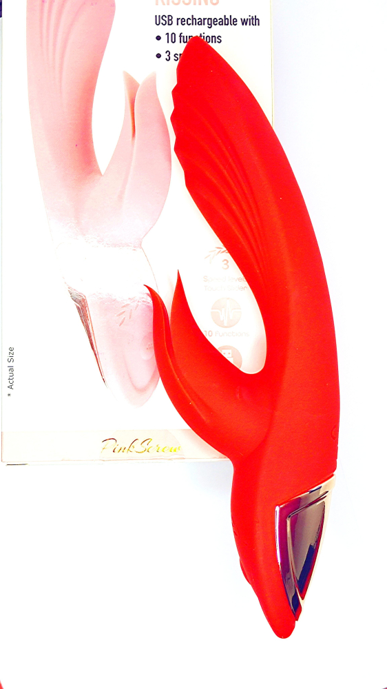 Оргазмический марафон открывает страстный вибромассажер "Kiss of desire" в красном жгучем цвете. Он манит своим умением поднять сексуальное настроение во время прелюдии, а это главный залог качественного секса и яркого продолжительного оргазма. "Kiss of desire" откроет новые грани сексуального удовольствия во время мастурбации: наедине с собой игра превратится в настоящее исследование своих эрогенных, интимных зон и всего тела. Возбуждающие потоки волнами пробегают по всему телу, как только включается вибрация! Секс девайс "Kiss of desire" создан полностью из гладкого и бархатного силикона, 100% гипоаллергенного- не раздражает даже самую чувствительную и нежную кожу, не вызывает болевых и прочих неприятных ощущений во время использования. Ребристый рельеф на основной вагинальной головке служит дополнительным массажером точке G, а отросток в форме изящного язычка - стимулятором клитора. Вибрационные режимы подаются синхронно на обе головки, так управлять игрушкой очень просто, ведь одна кнопка отвечает за включение и выключение, а также за переключение режимов вибрации . Для переключения каждой из трех скоростей, сверху над кнопкой изображен узор из листочков: проведите пальцем в правую или левую сторону по узору и с каждой скоростью сенсорный датчик сменит цвет и скорость. Чтоб включить девайс, просто зажмите кнопку на 3 сек пока не загорится индикатор, а после кликайте на нее для выбора нужного режима. Для выключения придержите кнопку на 3 сек пока индикатор не перестанет гореть. Время беспрерывной работы- 60 мин, время для полной зарядки 120 мин. Шнур USB в комплекте. Советуем использовать игрушку с лубрикантами на водной основе, а перед и после использования обрабатывать антибактериальным спреем для секс игрушек. Общая длина: 210мм Длина вагинальной головки: 110мм Клиторальный отросток: 40 мм Количество вибрации: 10 Скорость: 3 режима, сенсорное управление Материал: медицинский силикон цвет красный Перезаряжаемый: шнур штекерный USB в комплекте Упаковка: коробка