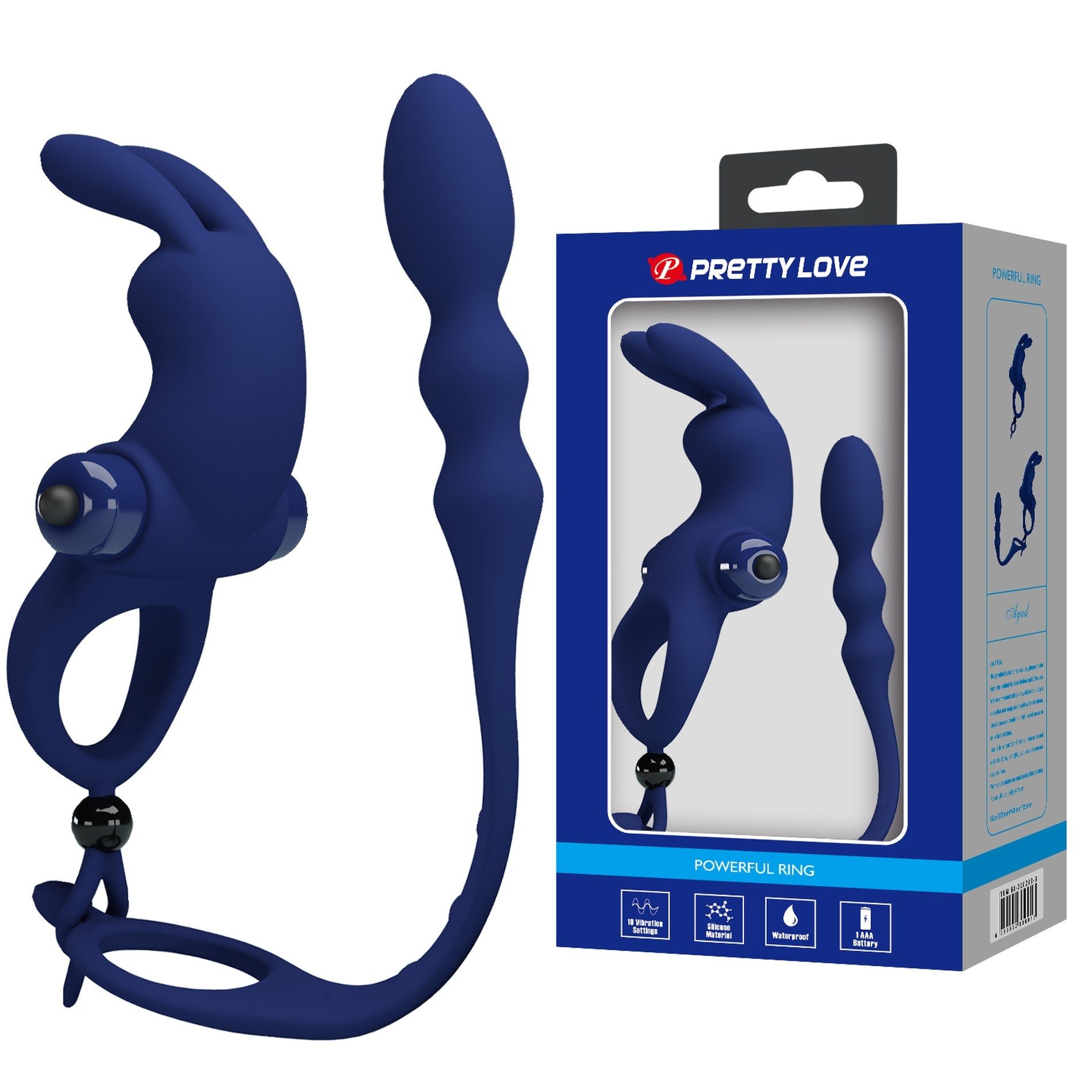 Вибромассажер для простаты с эрекционным виброкольцом на член синего цвета Lybaile Pretty Love Powerful ring