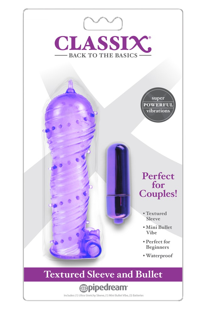 Насадка для члена рельефная Pipedream с вибропулей, фиолетовая