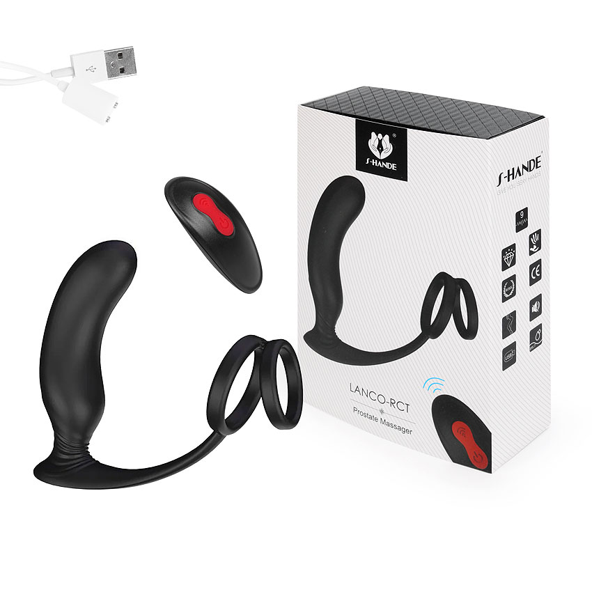 Вибростимулятор простаты с эрекционным кольцом чёрный S-hande