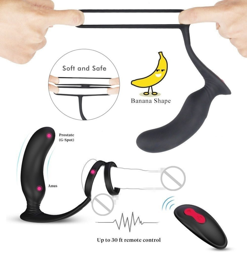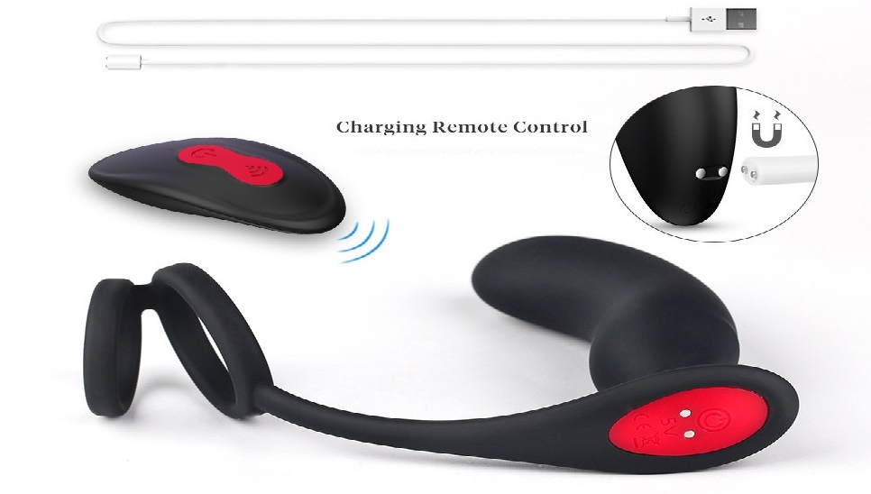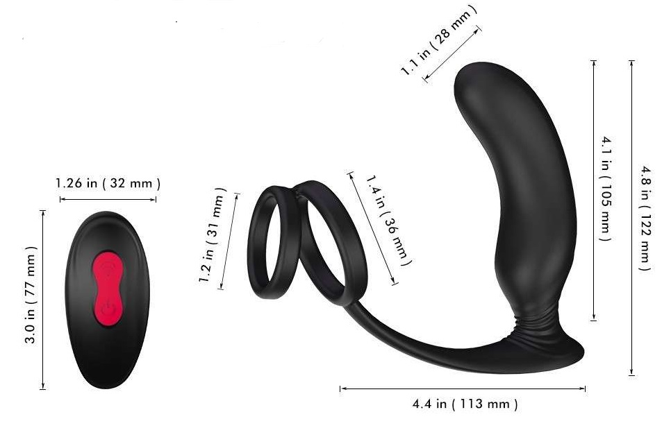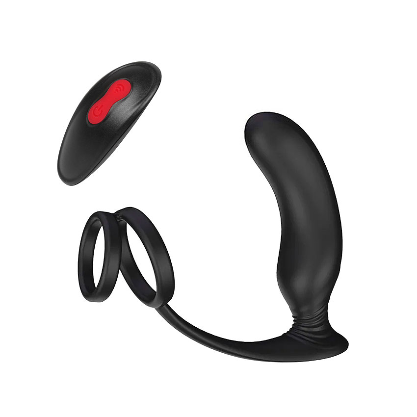 Беспроводной массажер для простаты и анального массажа с дистанционным управлением и кольцом для члена.