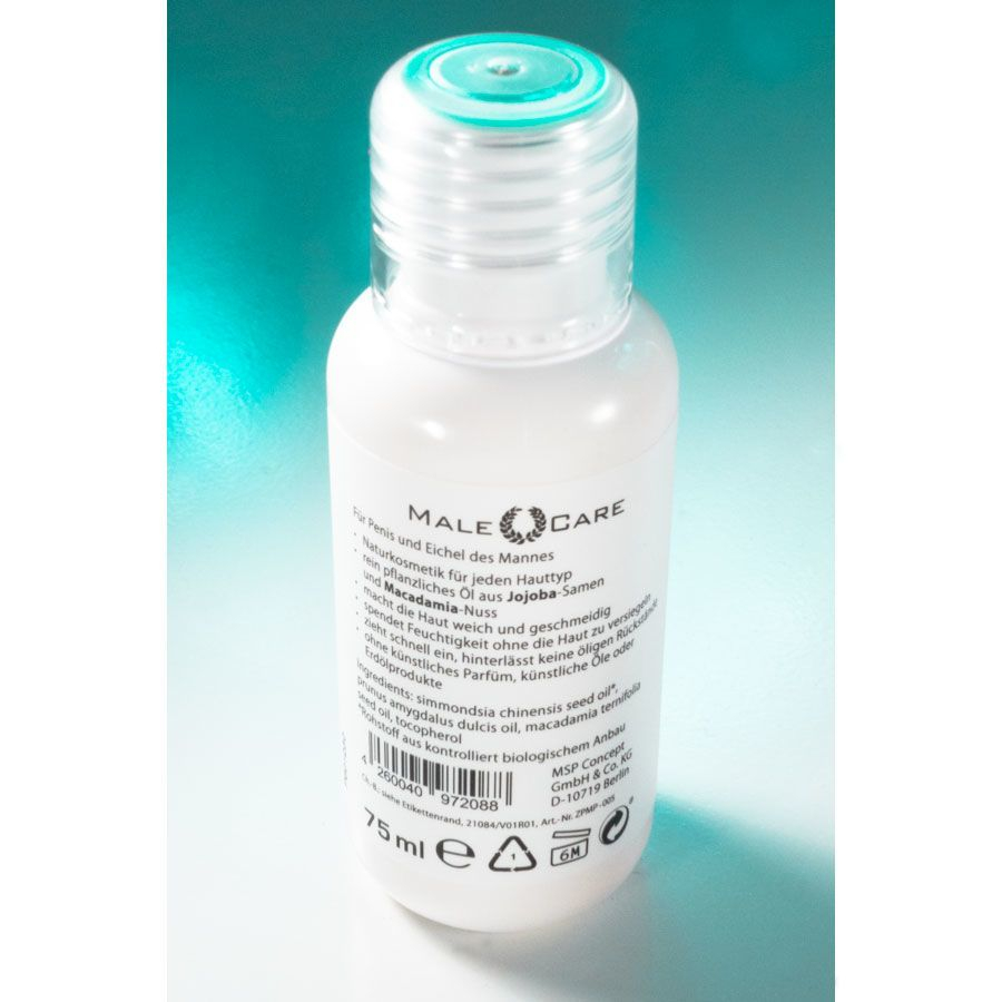 Восстанавливающее масло для ухода за членом и головкой Male Care - чистое растительное масло из семян жожоба и ореха макадамии, которое делает кожу мягкой и эластичной, а так же увлажняет кожу, не забивая при этом поры. При регулярном использовании улучшает физическое состояние полового члена. Рекомендуется использовать после каждого ношения экстендера (любого производителя), после использования вакуумной помпы или гидропомпы, во время массажа полового члена.
