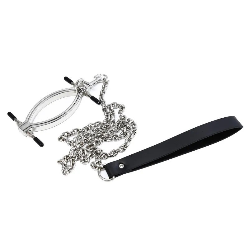 Зажим на клитор БДСМ из медицинской стали с черным поводком