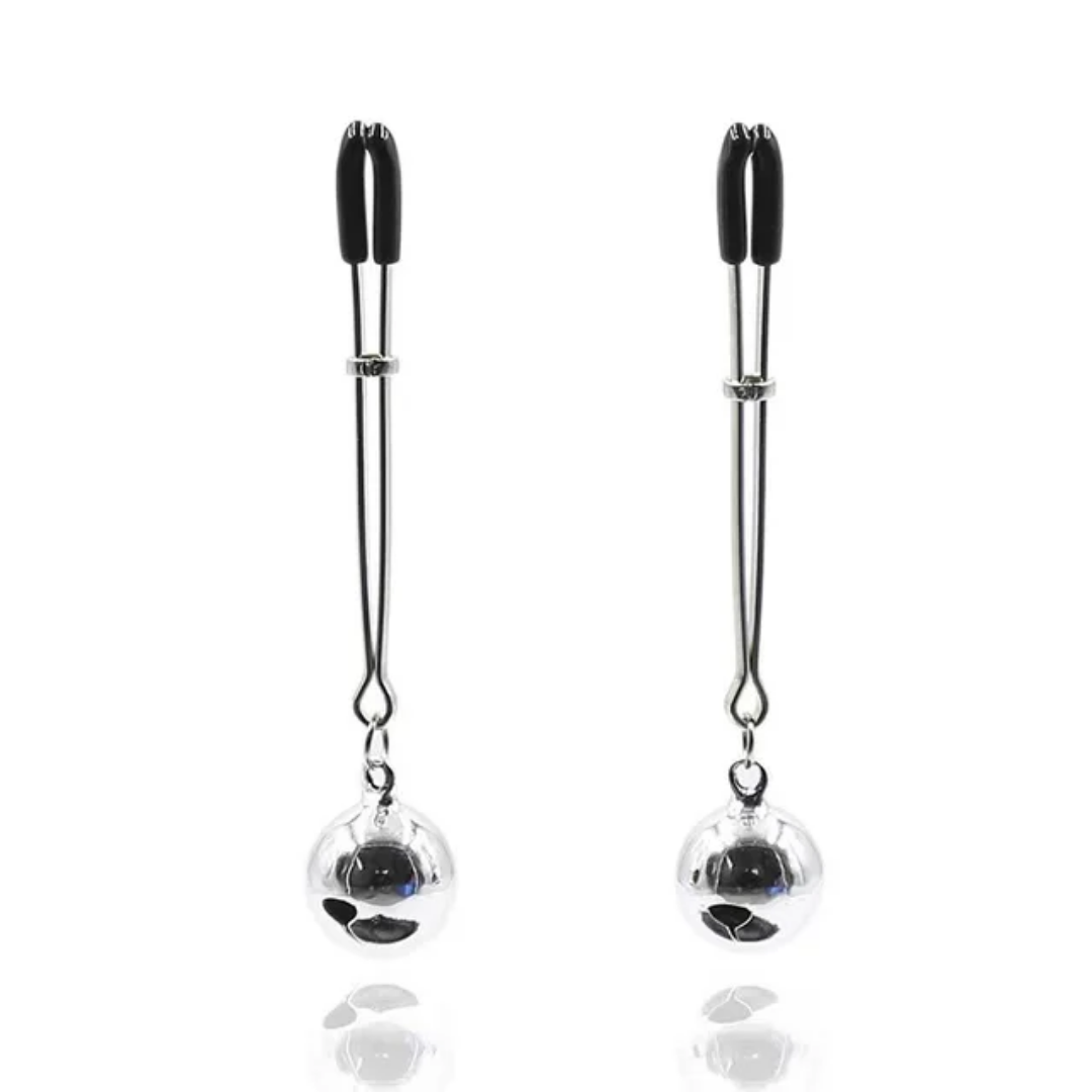 предмет для новых эротических манипуляций! Металлические зажимы с бегающей петелькой для зажатия и силиконовыми наконечниками, помогут ощутить возбуждение и даже оргазм по-новому. Зажимы послужат не только украшением, но и новым аксессуаром для ласк груди или клитора.
