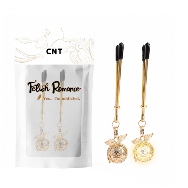 Характеристики Зажимы для сосков в виде пинцета с затяжным ползунком и подвесками золотистого цвета Cnt
