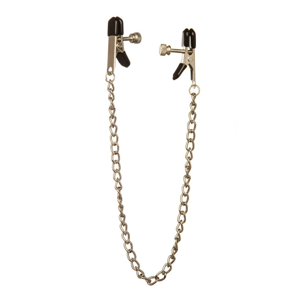 Мы часто забываем о такой эрогенной зоне, как соски, а они у большинства людей сверхчувствительны. Но есть хороший помощник, который не даст вам забыть – зажимы сосков! Этот отличный аксессуар сделает все за вас. Единственное – вам нужно аккуратно закрепить их на партнере. В этом вам поможет удобный регулируемый зажим. Стильная цепочка, соединяющая зажимы, при каждом вашем движении шатается, при этом даря яркие ощущения вам и привлекая внимание партнера к груди.