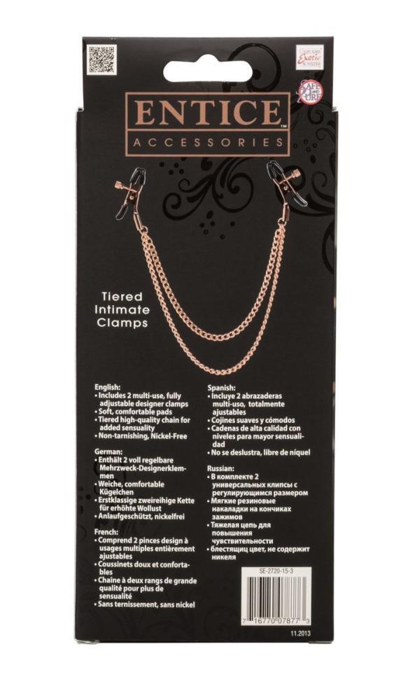 Будьте готовы разогреть ночь. Наши захватывающие и красивые зажимы для интимной гигиены Entice™ - это дизайнерские украшения в чувственном стиле. Этот набор из 2 многофункциональных дизайнерских зажимов оснащен высококачественной блестящей многоуровневой цепочкой для дополнительной привлекательности. Они полностью регулируются легким поворотом винта и подчеркнуты мягкими, удобными подушечками.