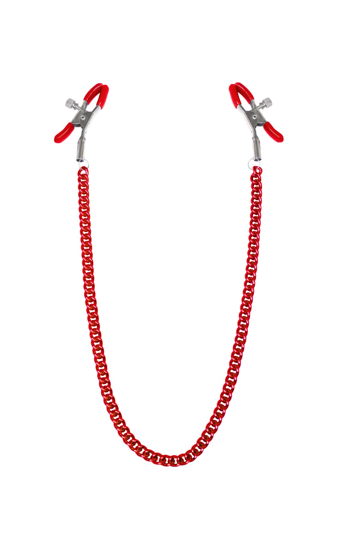 Классические зажимы для сосков, соединенные цепочкой, позволяет создать нужный уровень давления на сосок, а также — играть, потягивая за цепочку, давая ее в рот подопечной или прикрепляя к чему-то.