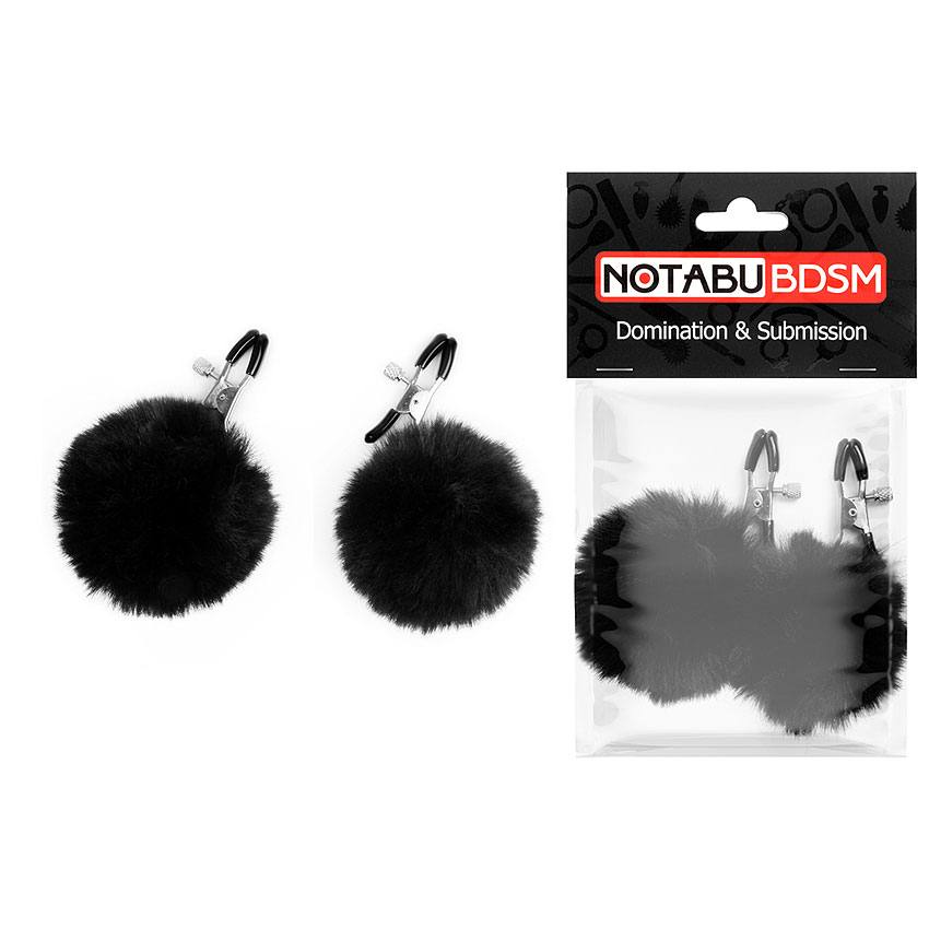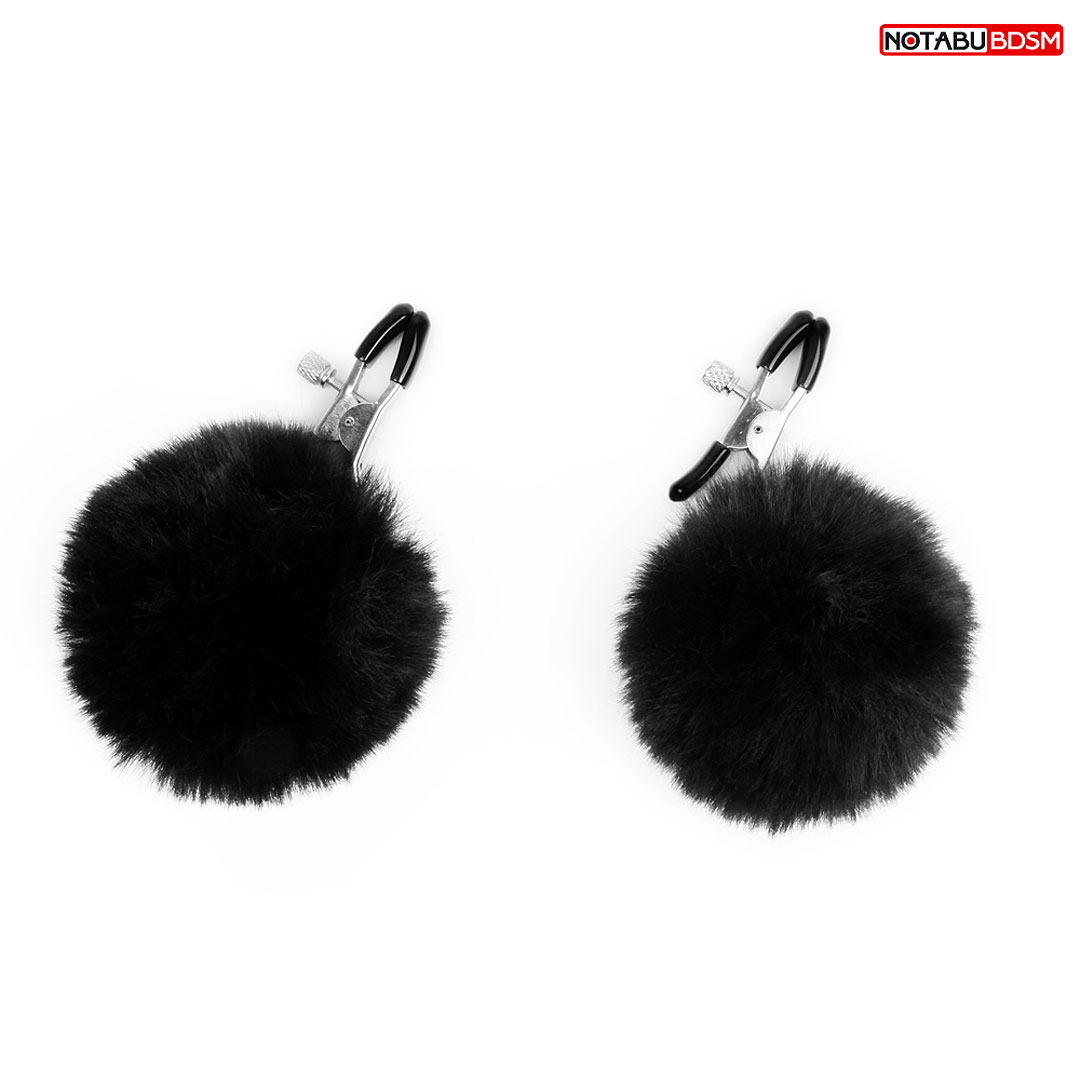Зажимы для сосков с меховыми помпонами чёрные Notabu