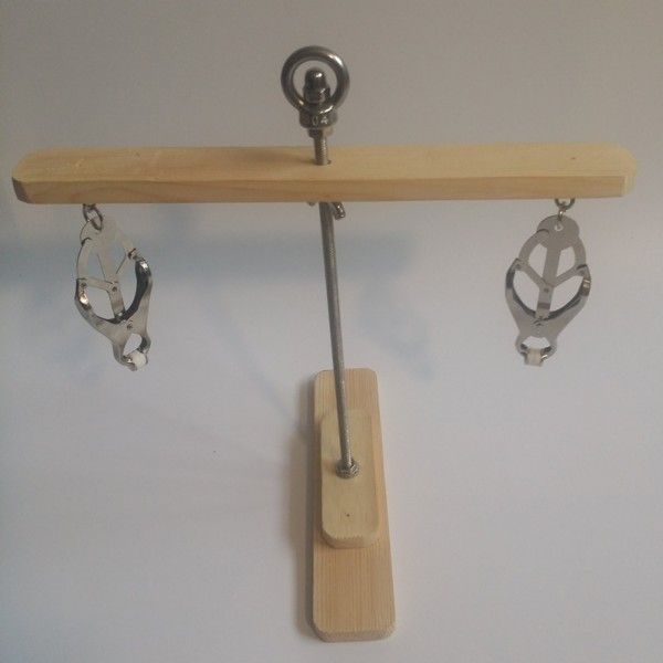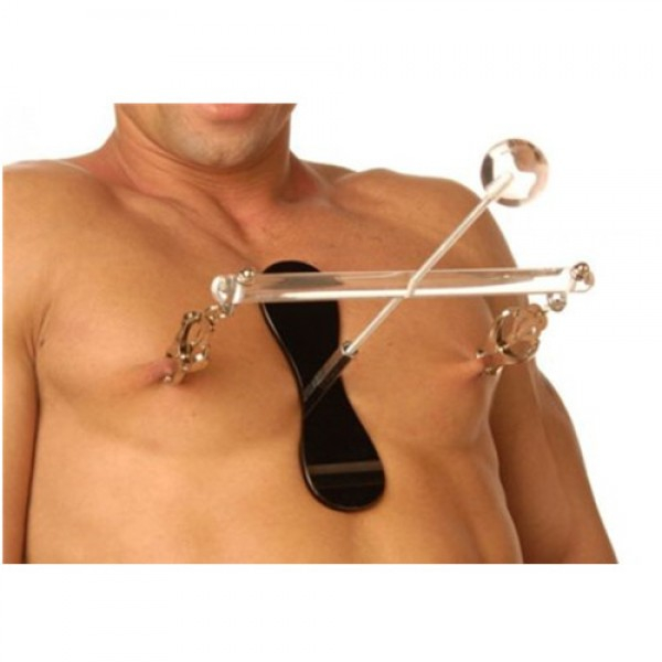 Простой, но в тоже время оригинальный дизайн этих зажимов разработан специально что бы доставить Вам максимум острых, приятных ощущений. С помощью, так званой, Башни Боли вы можете натягивать соски и контролировать этот процесс. Конструкция есть компактная легко разбирается и собирается.Расстояние между сосками - 19,5 см, общая длина - около 25 см.