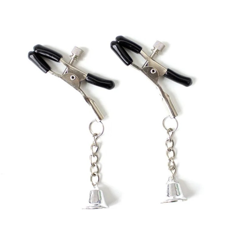 Зажимы на соски для БДСМ с колокольчиками серебристого цвета