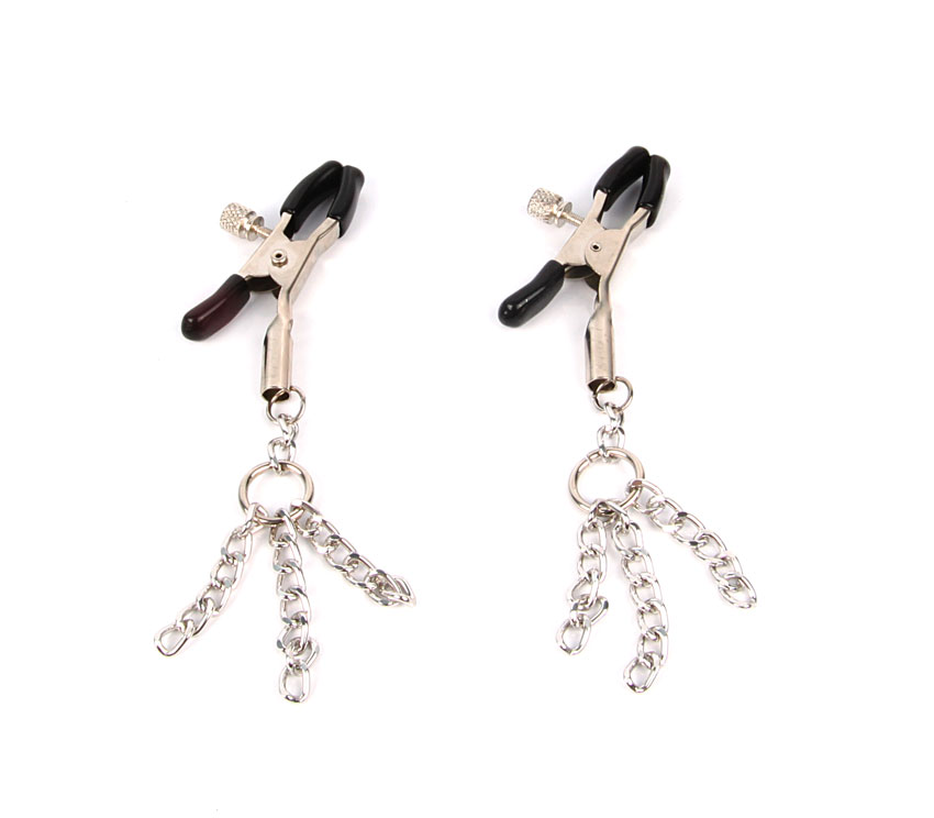 На концах зажимов имеются специальные эластичные накладки, которые препятствуют сильному сдавливанию и травмированию сосков. Подвески дают небольшой эффект утяжеления и украшают секс-игрушки.