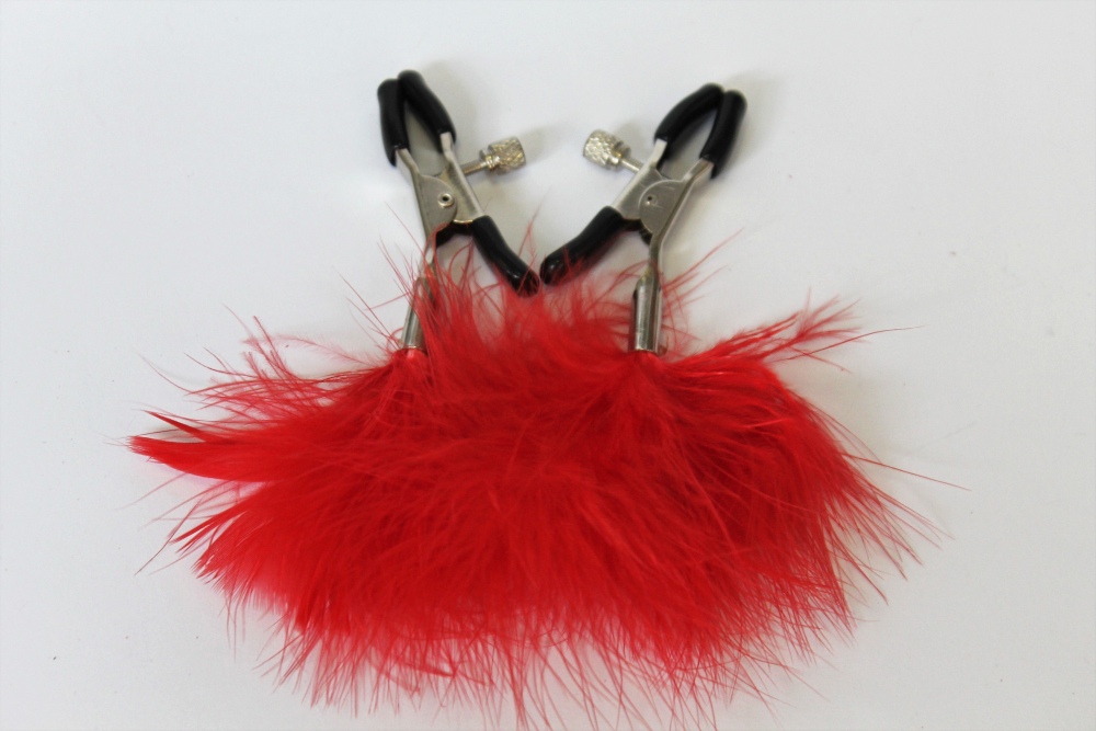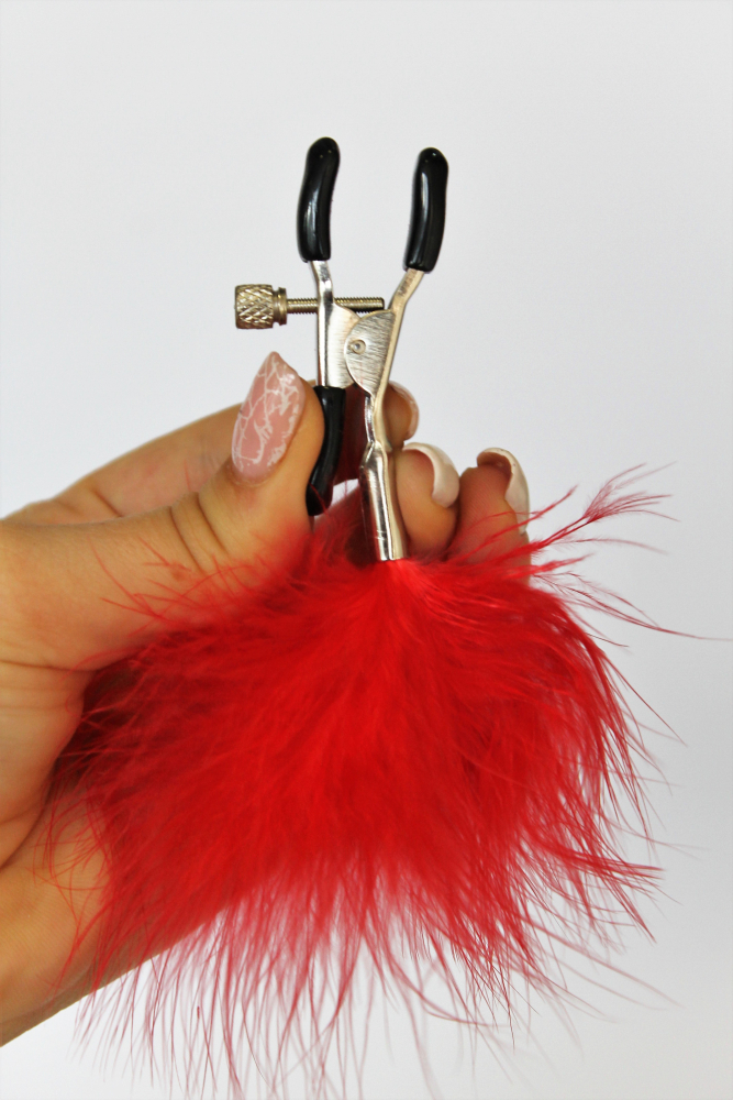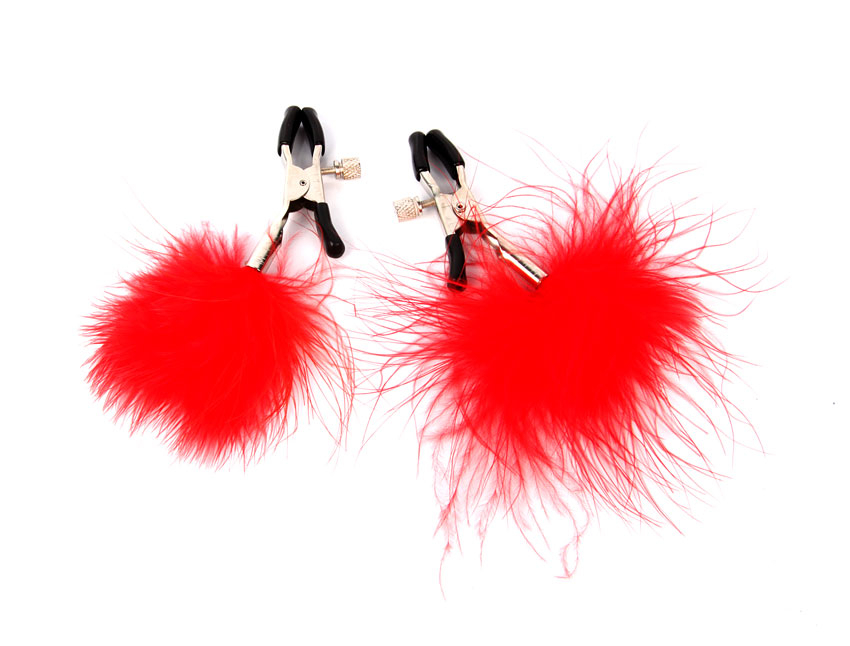 Зажимы на соски с красным пушком MLF-90103-16