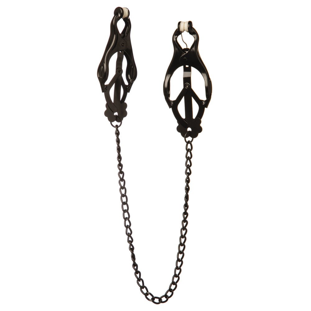Металлические зажимы покрыты мягкими резиновыми прокладками, они идеально подходят для любителей и продвинутых пользователей в БДСМ-играх. Они заставят соски стоять прямо и ваш партнер не сможет отвести от вас взгляд. Зажимы сделают соски сексуальными, дерзкими и твердыми. Nipple play не только украсит грудь, а еще и превосходно простимулируют соски, делая их более чувствительными. Японский дизайн зажима может обеспечить высокий уровень боли и обычно используется только более опытными пользователями. Данная конструкция зажима обеспечивает увеличение натяжения при давлении на цепочку. Японский зажим или клеверный одн из самых любимых и популярных зажимов среди любителей БДСМ игр.